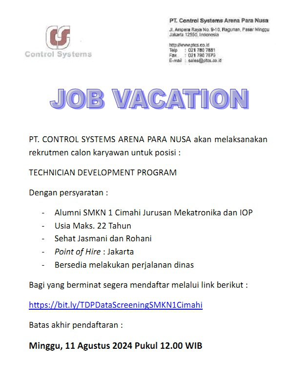 PT. CS akan mengadakan tes rekrutmen di sekolah sekitar tgl 13-15 Agustus 2024 bagi yg berminat segera daftar melalui link :