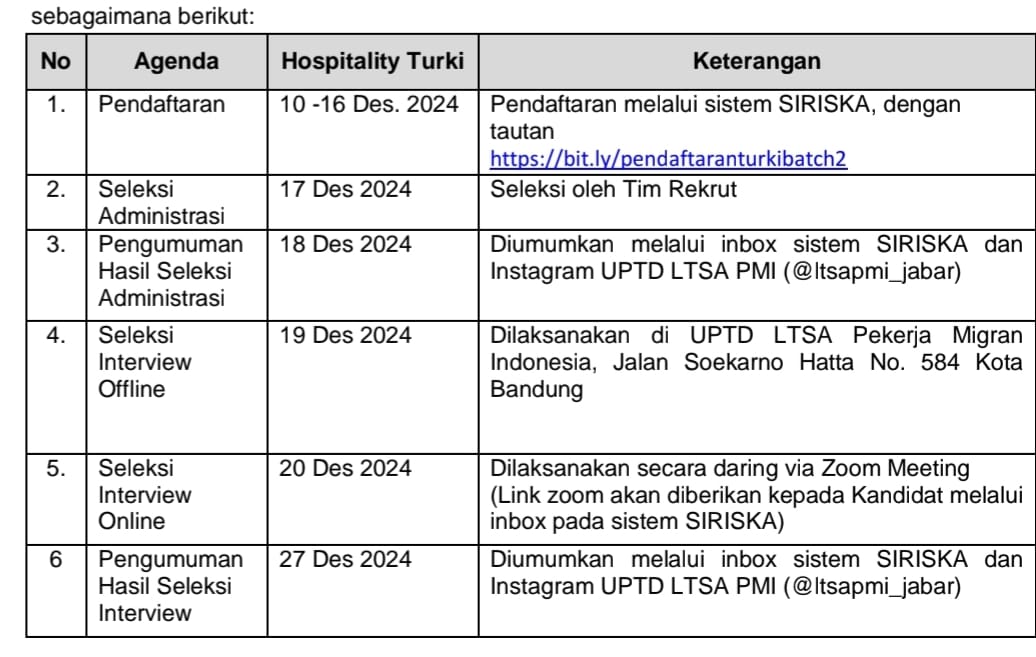 | Deskripsi | Kesempatan kerja di Turki untuk Posisi Jabatan