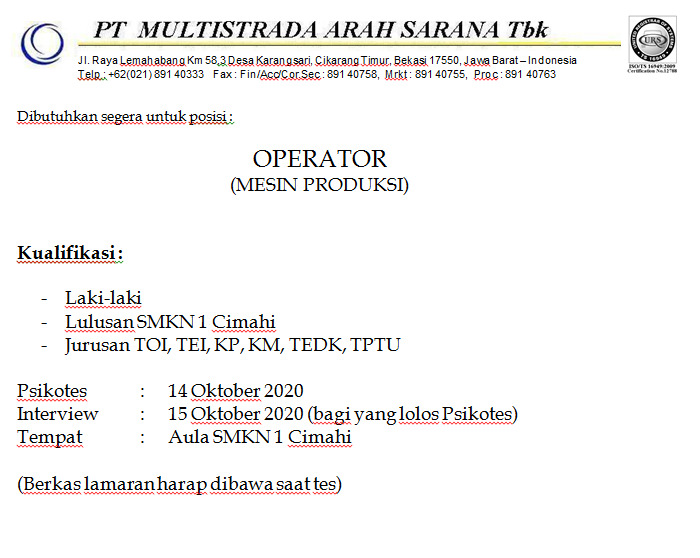 | Nama Berita | Lowongan Operator Mesin Produksi di PT Multistrada Arah Sarana |