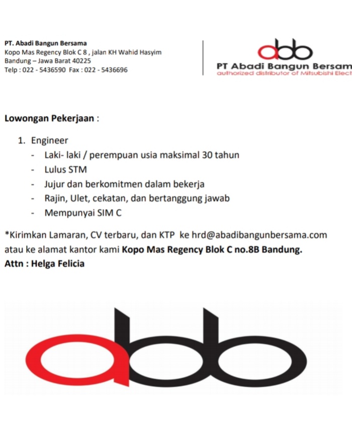 Lowongan PT Abadi Bangun Bersama Posisi Engineer