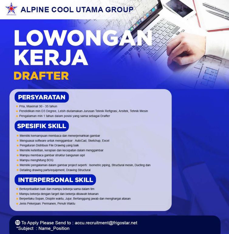 Silakan utk jurusan T. Pendingin, bagi yg berminat apply via email tertera dan cc